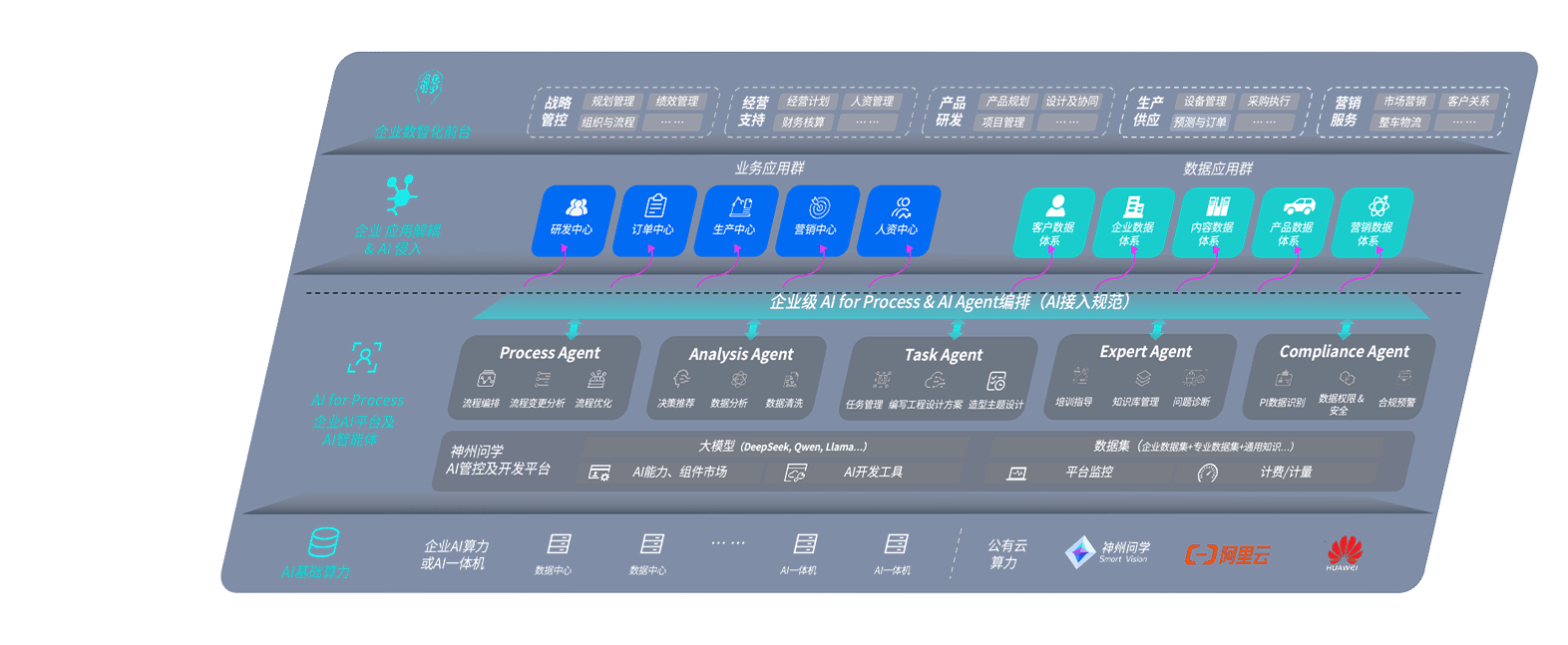 彩神问学智车解决方案是一套基于AI技术的汽车行业智能化系统,,,,覆盖从底层算力到顶层AI应用的全栈方案。。。。方案由算力层、、、、模型层和应用层组成:算力层,,方案支持多种一体机配置,,,具备云端灵活部署、、、、多云适配以及动态优化计算资源的能力;模型层,,彩神问学平台版提供了企业级AI应用一站式构建与管理平台,,,,支持基于后训练强化技术的汽车企业专属模型的训练、、、评测和运营;应用层,,彩神问学DeepSeek版提供包括超级员工、、、、智能招采、、、、智能营销、、、智能客服、、AI for BI等一系列解决方案,,,,可助力汽车行业实现数字化转型,,,,让管理更智能、、、、响应更敏捷。。。。
