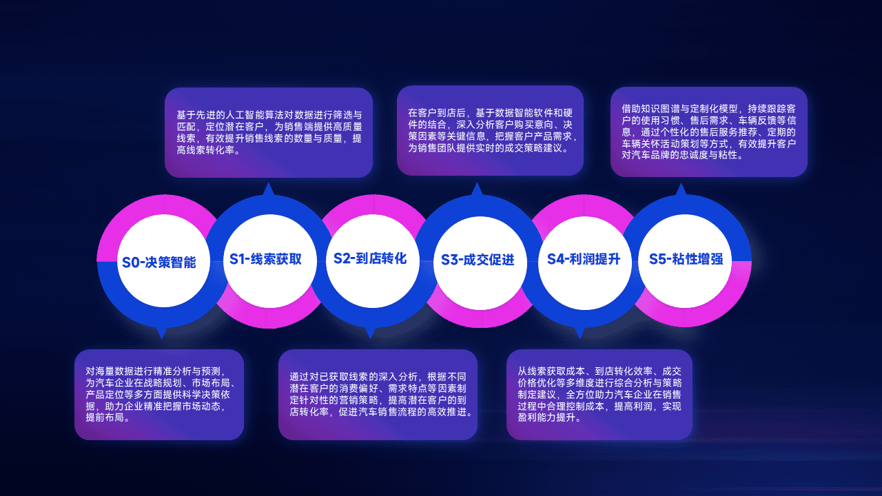 通过拓宽潜在客户来源、、、优化线索分配并提高到店转化率,,以增强销售效率。。同时,,,利用线索数据不断优化分析模型,,,有效提升转化率,,,,扩大营销影响力。。。。